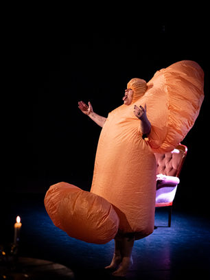 Esitys on räävitön tutkielma häpeästä, rakkaudesta, seksuaalisuudesta sekä vanhenemisesta vähemmistössä elävän naisen kehon silmin.